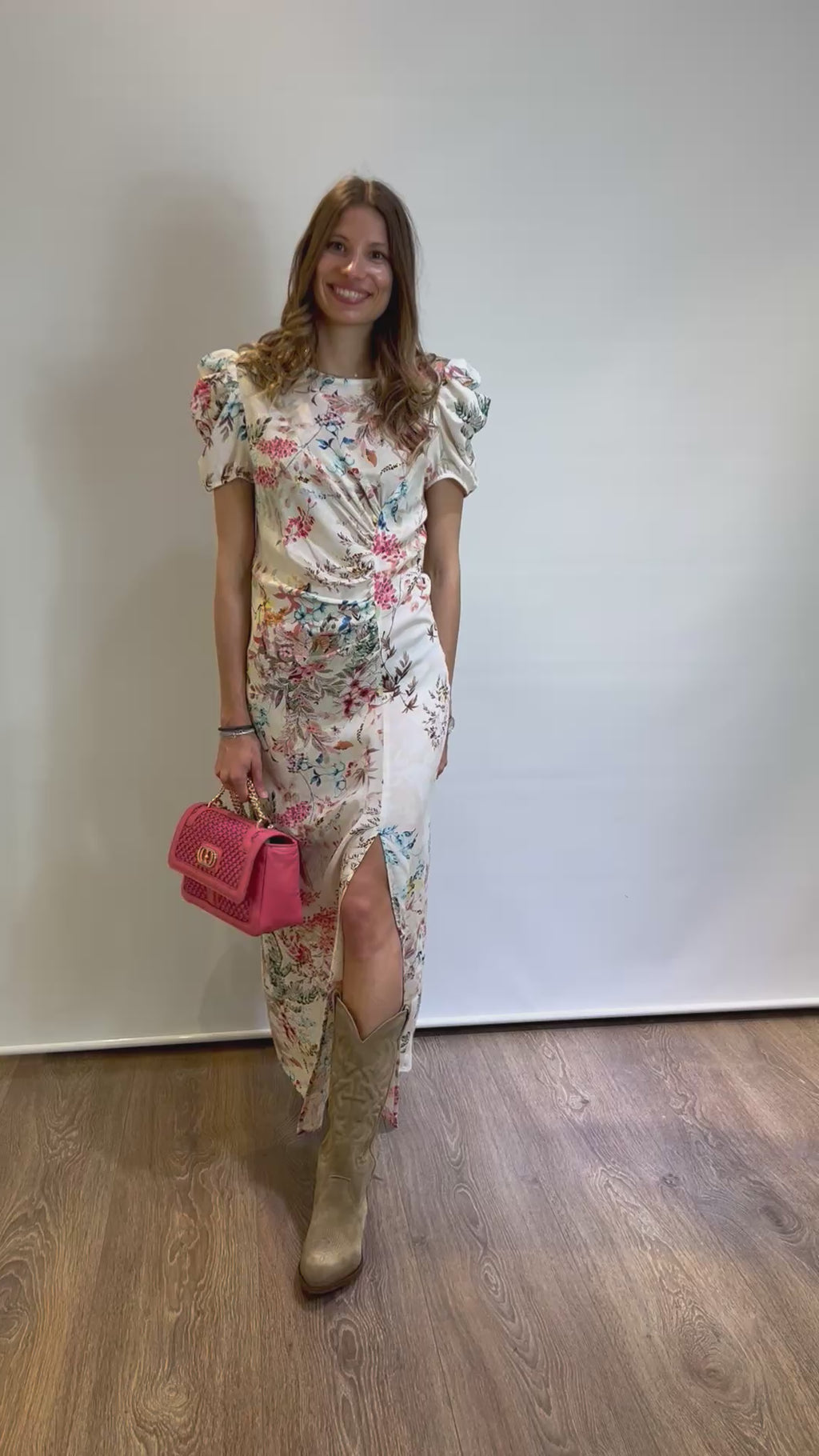 Abito lungo Vicolo con manica corta a sbuffo, spacco laterale sul davanti e motivo di arriccio sulla parte davanti