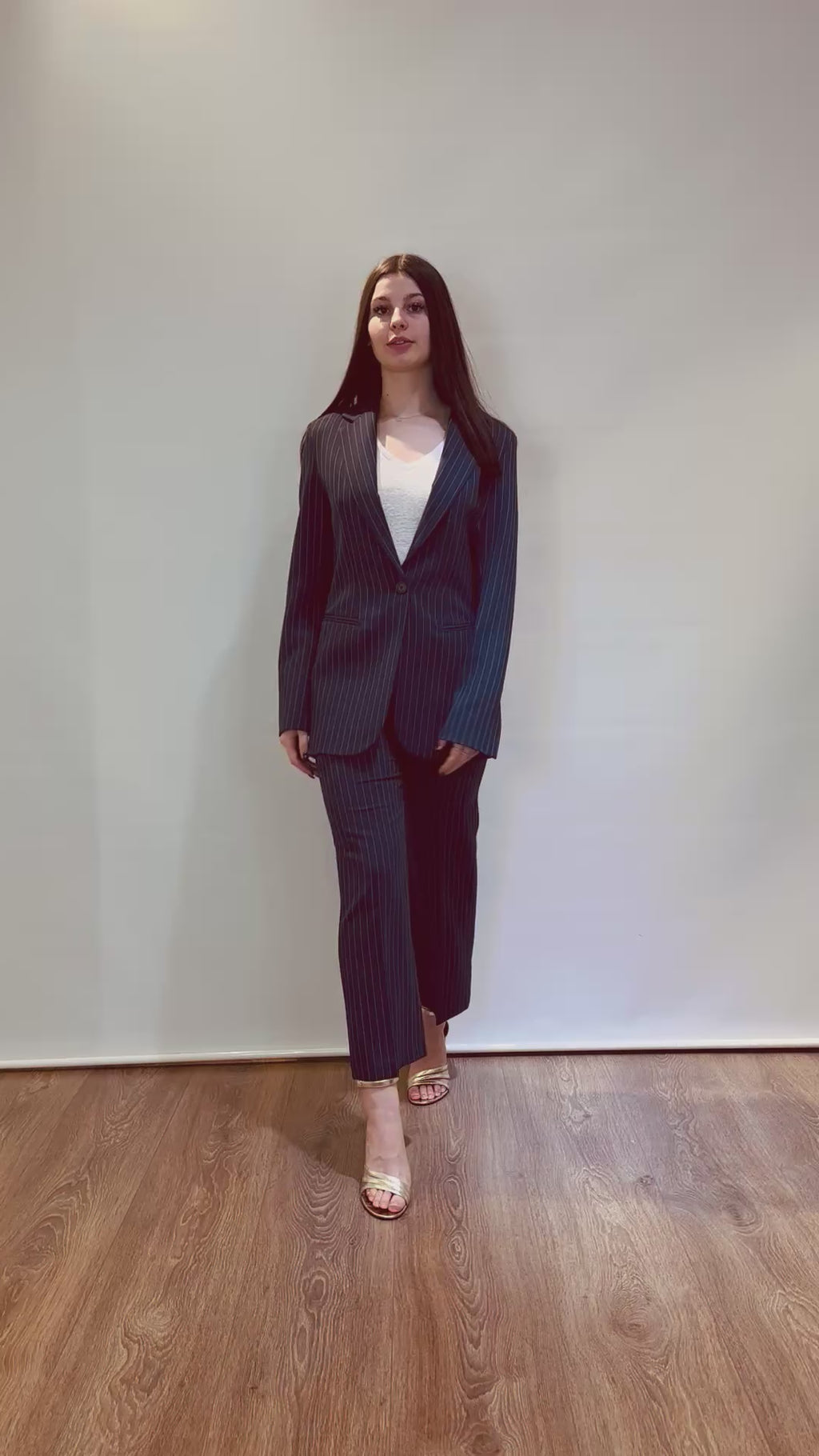 Giacca monopetto in fresco di lana disegnato. Modello con rever, chiusura frontale con un bottone in corno. Due filetti tasca. Lunghezza e vestibilita' regolare.