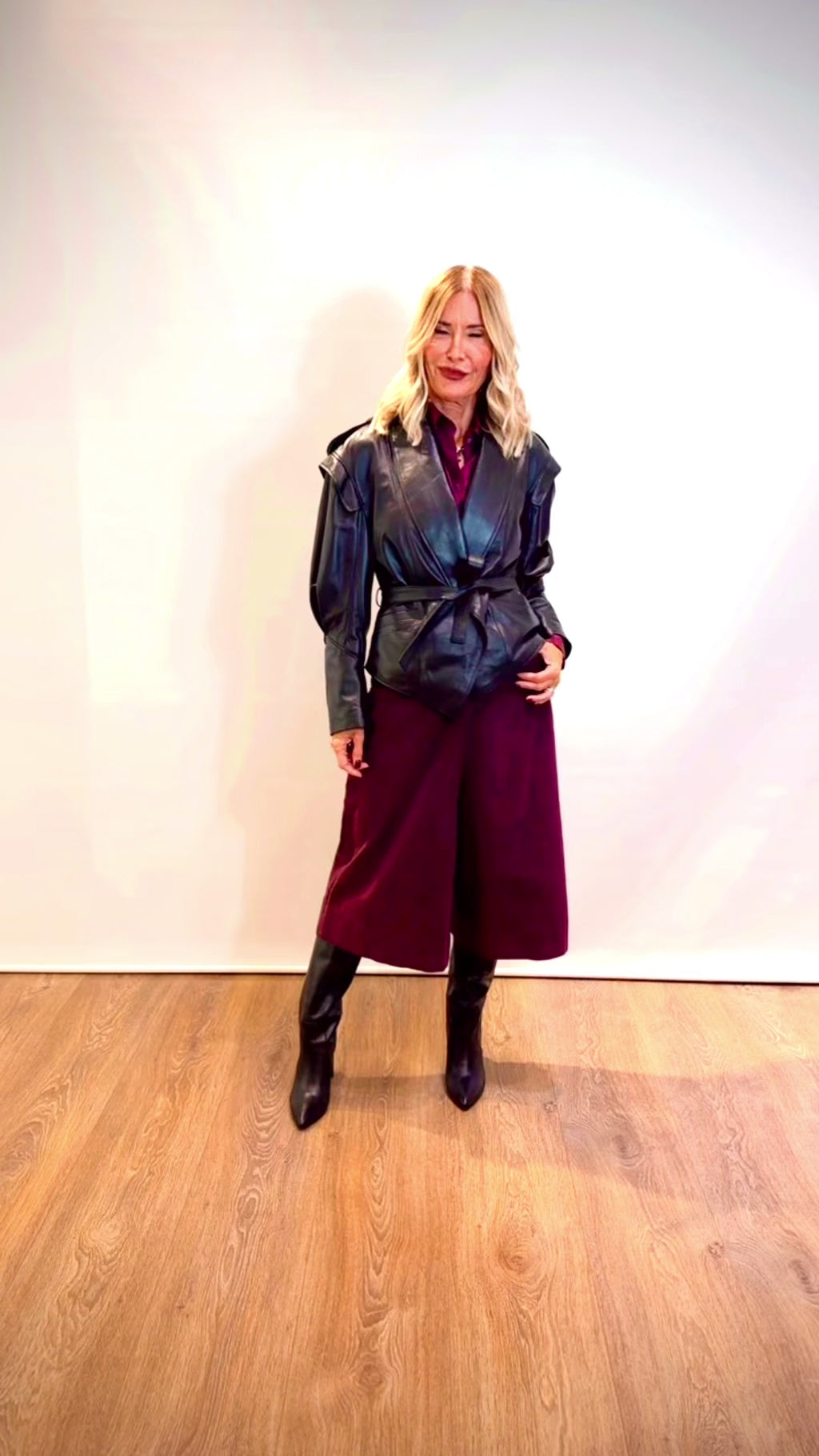 Giacca in pelle nera con cintura in vita , spalla importate ,alamari con bottone sulle spalle, tasche a pattina sul davanti.