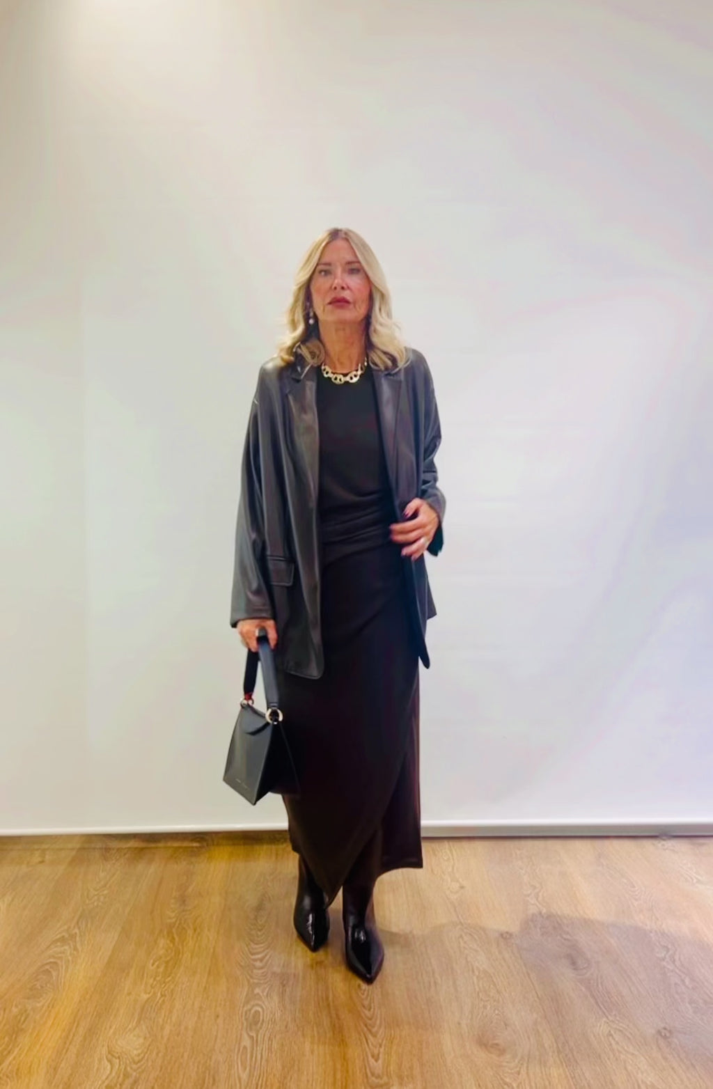 Giacca over monopetto a 1 bottone in ecopelle testa di moro