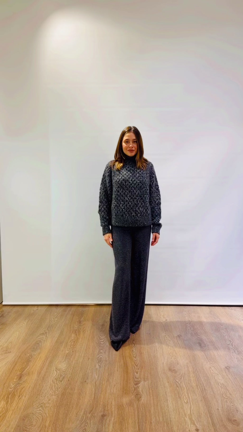 Maglia misto alpaca melangiata tutta bucherellata con decorazione di paillettes qua e la'.